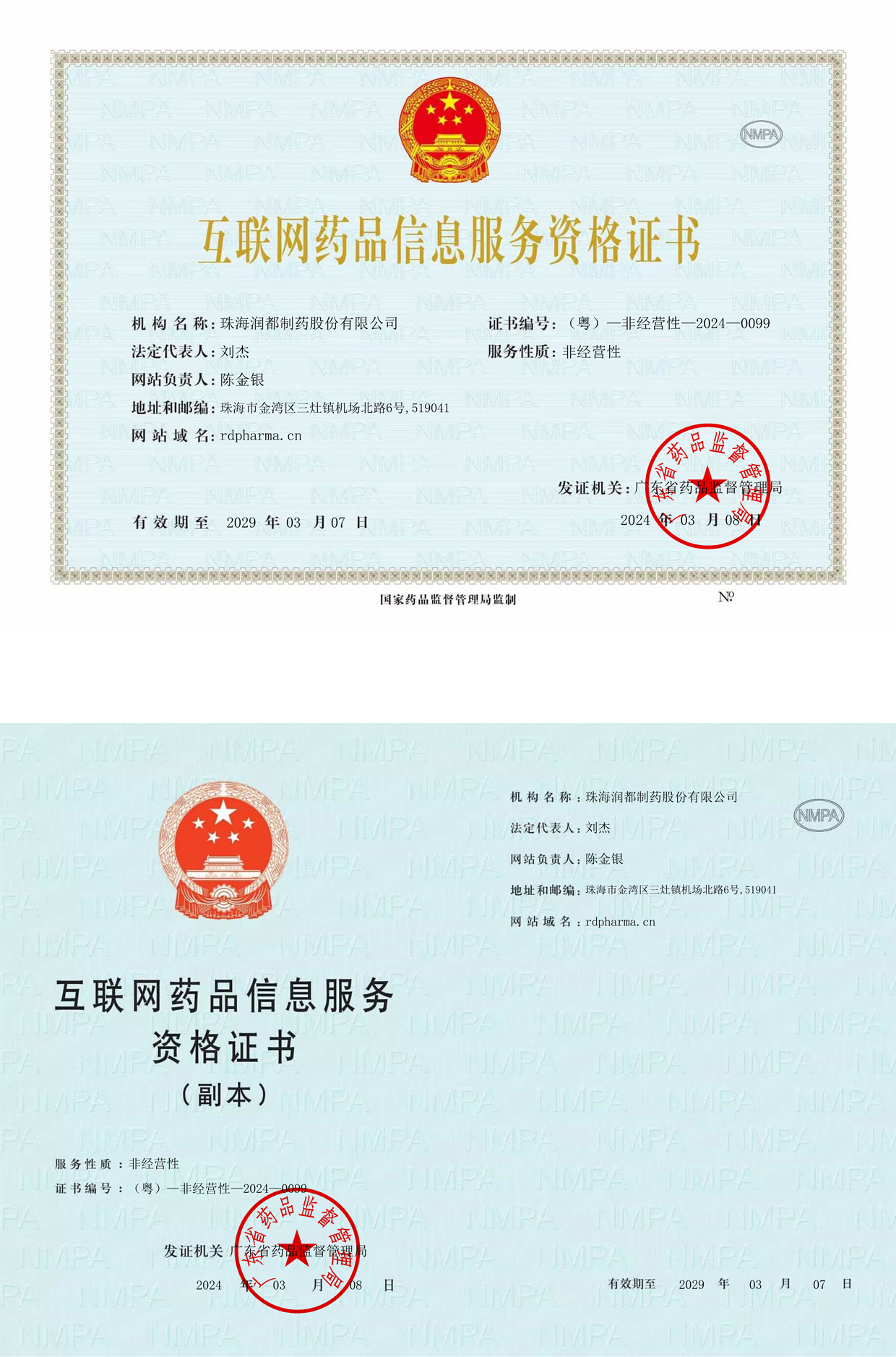 互聯(lián)網(wǎng)藥品信息服務(wù)資格證:(粵)-非經(jīng)營(yíng)性-2019-0108